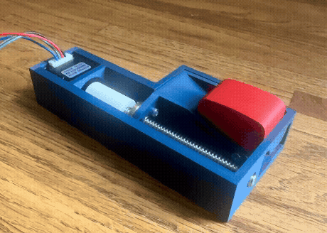 Here’s a basic model of the system, using an off-the-shelf stepper motor and leadscrew to push a 3D printed wedge under the red lifter.